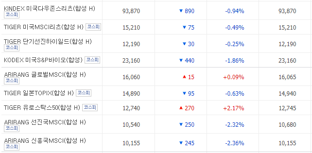 ETF 상품 중에서 '(합성)' 이라는 단어가 붙어있는 합성ETF 상품을 볼 수 있습니다. 그리고 그와 반대되는 상품으로는 실물ETF가 있죠.